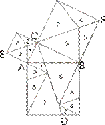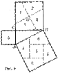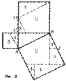 Изображенное на рисунке разложение принадлежит Гутхейлю; для него характерно наглядное расположение отдельных частей, что позволяет сразу увидеть, какие упрощения повлечет за собой случай равнобедренного прямоугольного треугольника. Доказательство 9 века н.э. Ранее были представлены только такие доказательства, в которых квадрат, построенный на гипотенузе, с одной стороны, и квадраты,построенные на катетах, с другой, складывались из равных частей. Такие доказательства называются доказательствами при помощи сложения ("аддитивными доказательствами") или, чаще, доказательствами методом разложения. До сих пор мы исходили из обычного расположения квадратов, построенных на соответствующих сторонах треугольника, т. е. вне треугольника. Однако во многих случаях более выгодно другое расположение квадратов. На рисунке квадраты, построенные на катетах, размещены ступенями один рядом с другим. Эту фигуру, которая встречается в доказательствах, датируемых не позднее, чем 9 столетием н. э., индусы называли "стулом невесты". Способ построения квадрата со стороной, равной гипотенузе, ясен из чертежа. Общая часть двух квадратов, построенных на катетах, и квадрата, построенного на гипотенузе, - неправильный заштрихованный пятиугольник 5. Присоединив к нему треугольники 1 и 2, получим оба квадрата, построенные на катетах; если же заменить треугольники 1 и 2 равными им треугольниками 3 и 4, то получим квадрат, построенный на гипотенузе. На рисунках ниже изображены два различных расположения близких к тому, которое дается на первом рисунке.