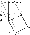 · На рис. 7 изображена обычная Пифагорова фигура – прямоугольный треугольник ABC с построенными на его сторонах квадратами. К этой фигуре присоединены треугольники 1 и 2, равные исходному прямоугольному треугольнику. Справедливость теоремы Пифагора вытекает из равновеликости шестиугольников AEDFPB и ACBNMQ. Здесь CÎEP, прямая EP делит шестиугольник AEDFPB на два равновеликих четырехугольника, прямая CM делит шестиугольник ACBNMQ на два равновеликих четырехугольника; поворот плоскости на 90° вокруг центра A отображает четырехугольник AEPB на четырехугольник ACMQ.