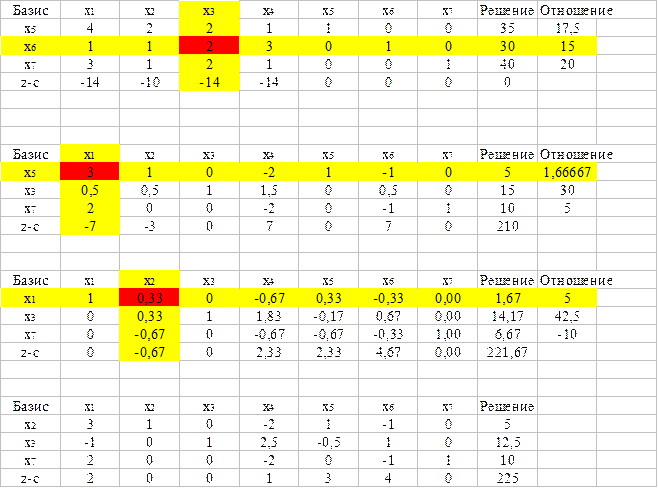 Рис. 3.2 Последовательные итерации выполнения симплекс-метода представлены в следующей таблице.
