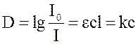 I – интенсивность света I0 – интенсивность исходного источника ε – коэффициент поглощения l – толщина слоя раствора c – концентрация вещества