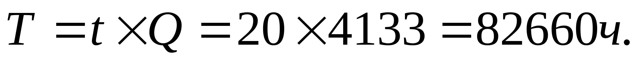 t – трудоемкость единицы продукции – 20 часов Т – время, затраченное для производства данного количества продукции Q – количество продукции – 4133 единиц в год, отсюда: учитывая, что на предприятии 22 единицы ведущего оборудования, то на одну единицу оборудования приходится: 82660/22=3757 часов или 156 дней.