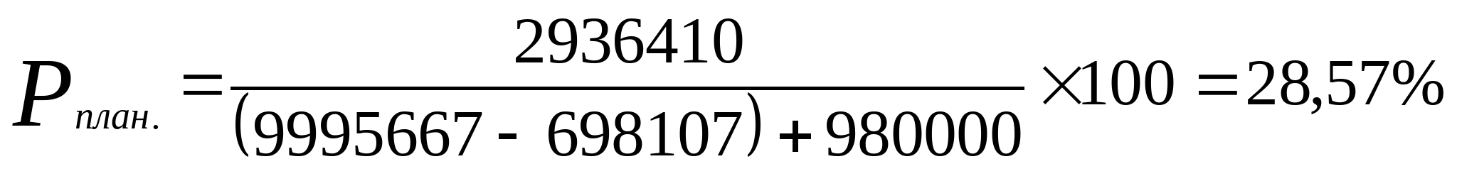 7.6 Рентабельность, сущность и виды. В условиях рыночных отношений, характеризующихся своей динамичностью, приходится постоянно принимать неординарные решения, связанные с учетом финансового положения предприятия. И это в конечном итоге связано с оценкой использования ресурсов предприятия. Для оценки уровня эффективности работы предприятия получаемый результат (валовый доход, прибыль) сопостовляется с затратами или используемыми ресурсами. Соизмерение прибыли с затратами означает рентабельность, или, точнее, норму рентабельности. Рентабельность – показатель эффективности единовременных и текущих затрат. В общем виде рентабельность определяется отношением прибыли к единовременным и текущим затратам, благодаря которым получена эта прибыль. Различают "рентабельность производства" и "рентабельность продукции". Рентабельность производства показывает, насколько результативно используется имущество предприятия; она определяется как процентное отношение годовой прибыли (балансовой) к среднегодовой стоимости основных фондов и сумме оборотных средств: Ро – рентабельность производства, %; Пб – балансовая прибыль, руб.; Фо – среднегодовая стоимость О.Ф., руб.; Фоб – величина оборотных средств, руб. Рентабельность продукции показывает результативность текущих затрат; она определяется отношением прибыли от реализации продукции: Рп – рентабельность реализуемой продукции , %; Прп – прибыль от реализации продукции, руб; Сп – себестоимость реализуемой продукции Рентабельность продукции можно рассчитать по всей реализованной продукции и по отдельным ее видам. Рентабельность вложений в предприятие определяется по стоимости имущества, имеющего в его распоряжении. При расчете используются показатели балансовой и чистой прибыли. Стоимость имущества определяется по бухгалтерскому балансу. Кроме прибыли при расчете рентабельности вложений можно использовать от реализации продукции. Этот показатель характеризует уровень продаж на 1 рубль вложений в имущество предприятия. Пч – чистая прибыль предприятия, руб. Рентабельность продукции.Прибыль от реализации продукции составила: В текущем году – 855325 рублей, выручка от реализации продукции – 19437500руб.; В планируемом – 3156410 рублей, выручка от реализации продукции - 24465584 руб.; Себестоимость реализованной продукции составила В текущем году – 11779050 рублей, на единицу продукции – 2850 руб.; В планируемом – 11522940 рублец, на единицу продукции – 2370 руб.; Рентабельность по виду продукции текущего года составит: Рентабельность объема продукции: