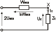 Падающие волны заменены включением ЭДС где Ток через сопротивление zх будет равен: