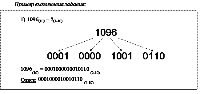 1. Переведите данное число из десятичной системы счисления в двоично-десятичную. В двоично-десятичном представлении каждая цифра числа кодируется по отдельности четырьмя битами.
