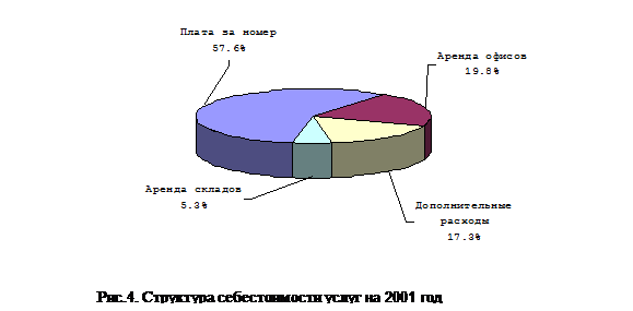 · начисления на заработную плату ($139’000 в первый год · эксплуатации) – 38,5% от фонда заработной платы. 2. Структура поступлений (рис.5.): · плата за предоставляемые номера ($4’380’000 в год); · аренда офисов ($1’500’000 в год); · аренда складов ($400’000 в год); · дополнительные доходы за счет инициированных гостиничным комплексом видов бизнеса (рестораны, бизнес-центр, сауны, кафе, бассейн…) – 30% дохода гостиницы ($1’314’000 в год).
