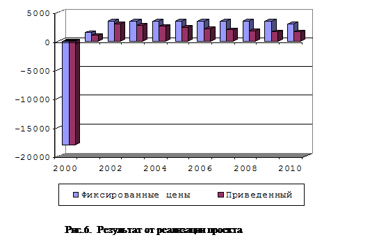 3. Динамика финансовых потоков показывает, что в любой момент времени Компания может отвечать по своим обязательствам. 4. Результаты по проекту (коэффициент дисконтирования в расчетах принят на уровне 8% в год): · результаты от реализации проекта (рис.6.);