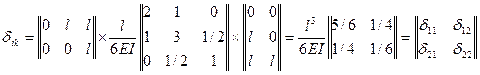 Определение коэффициентов δ11 , δ12 , δ22 можно записать одной матричной записью