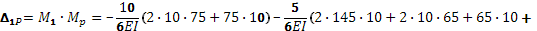6. Находим свободные члены системы по формуле Мора для прямолинейных участков, а для участков с распределенной нагрузкой по формуле Симпсона: