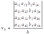 Помножимо ліву і праву частини рівності (5.2) на хі . В лівій частині будемо мати Δ хі , в правій же частині введемо у всі члени і –го стовпчика визначника акі множник хі