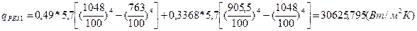 где С0 - постоянная Стефана – Больцмана, Вт/м2 К; ТСР.Г1, ТСР.М1 , ТСР.К1 – температуры соответственно дымов газов, металла и кладки для первого интервала нагрева, (17),(18),(19),К;