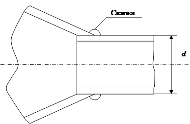 Рисунок 3.8 – Сварное соединение трубки и конической части цевки Шов является тавровым кольцевым. Его рассчитывают по касательным напряжениям среда при действии осевой нагрузки, определяемой давление р :