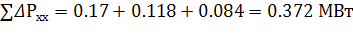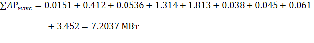 Суммарные переменные потери активной мощности находятся путём суммирования потерь по линиям и трансформаторам.