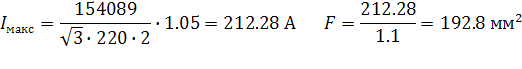 По результатам расчёта принимаем ближайшее стандартное сечение. ЛЭП ЦП-п/ст А АС-240 ЛЭП п/ст А-п/ст Б АС-185 ЛЭП п/ст А-п/ст В АС-50 Проверка экономически целесообразных сечений проводов по условиям короны. Учитывая минимально допустимые сечения по условиям исключения общей короны принимаем к установке следующие провода: ЛЭП ЦП-п/ст А АС-240 ЛЭП п/ст А-п/ст Б АС-185 ЛЭП п/ст А-п/ст В АС-70 Проверка проводов по длительно допустимой токовой нагрузке. При выходе из строя одной цепи линии по оставшейся в работе цепи должна передаваться прежняя мощность, т. е. ток линии увеличится в два раза по сравнению с нормальным режимом: