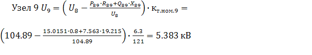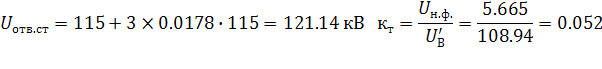 П/ст Б . Установлен трансформатор ТДЦН 63/110 , 115±9×1.78%/6.3. Максимальный режим. Напряжение ответвления трансформаторов определяются по формуле Напряжение на шинах НН, приведённое к высшему