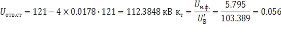 П/ст В . Установлен трансформатор ТД 40/110 , 121±9×1.78%/6.3. Максимальный режим. Напряжение ответвления трансформаторов определяются по формуле Напряжение на шинах НН, приведённое к высшему