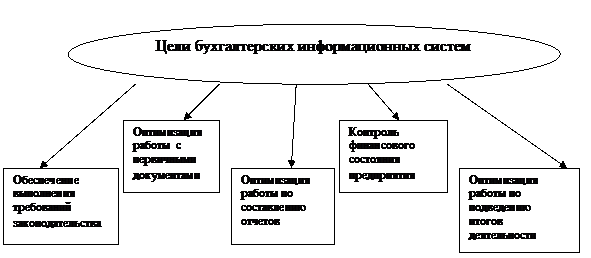 Для автоматизации поставленных задач требуется наличие: · информационной базы; · программного обеспечения; · компьютерной техники; · грамотные пользователи компьютеров. Цели бухгалтерских информационных систем: Рис.2 Дерево целей бухгалтерских информационных систем