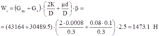 – суммарная сила тяжести бетонной смеси в бункерах, К – коэффициент сопротивления перекатыванию колес по рельсам (плечо трения качения), м; К