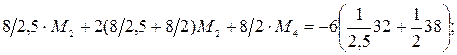 Після підстановки в рівняння трьох моментів маємо: