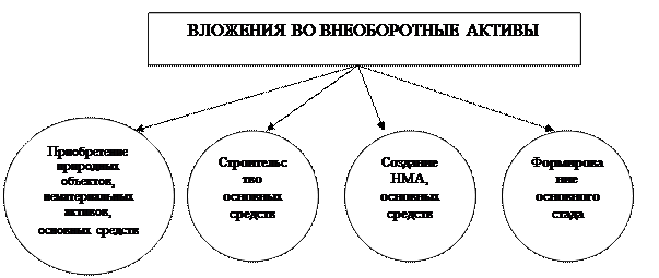 Рис.3.1 Классификация вложений во внеоборотные активы предприятия Долгосрочные инвестиции - это затраты на создание, увеличение размеров, а также приобретение внеоборотных активов длительного пользования (свыше одного года), не предназначенных для продажи, за исключением долгосрочных финансовых вложений в государственные ценные бумаги, ценные бумаги и уставные капиталы других организаций. Долгосрочные инвестиции связаны со следующими действиями: - осуществление капитального строительства в форме нового строительства, а также реконструкция, расширение и техническое перевооружение действующих организаций и объектов непроизводственной сферы; - приобретение зданий, сооружений, оборудования, транспортных средств и других отдельных объектов (или их частей) основных средств; - приобретение земельных участков и объектов природопользования; - приобретение и создание активов нематериального характера (патентов, лицензий, программных продуктов, научно - исследовательских и опытно - конструкторских разработок, проектно - изыскательских работ и др.). Законченные долгосрочные инвестиции оценивают исходя из инвентарной стоимости законченных строительных объектов и приобретенных отдельных видов основных средств и других долгосрочных активов. В бухгалтерском балансе долгосрочные инвестиции отражаются по статье "Незавершенное строительство". По этой статье застройщик показывает стоимость незаконченного строительства, осуществляемого хозяйственным и подрядным способами. Источниками финансирования долгосрочных инвестиций могут быть собственные средства организаций и привлеченные - долевое участие в строительстве, дополнительные взносы участников, долгосрочные кредиты банков, долгосрочные займы, средства внебюджетных фондов, средства федерального бюджета, предоставляемые на безвозвратной и возвратной основе. К собственным средствам, являющимся источником финансирования долгосрочных инвестиций, относят прибыль, остающуюся в распоряжении организаций, амортизационные отчисления по основным средствам и нематериальным активам, страховые возмещения, полученные в покрытие потерь и убытков от страховых случаев, и др. Основными задачами учета долгосрочных инвестиций являются: - своевременное, полное и достоверное отражение всех произведенных расходов при строительстве объектов по их видам и учитываемым объектам; - обеспечение контроля за ходом выполнения строительства, вводом в действие производственных мощностей и объектов основных средств; - правильное определение и отражение инвентарной стоимости вводимых в действие и приобретенных объектов основных средств, земельных участков, объектов природопользования и нематериальных активов; - осуществление контроля за наличием и использованием источников финансирования долгосрочных инвестиций. Учет долгосрочных инвестиций ведется по фактическим затратам: - в целом по строительству и по отдельным объектам (зданию, сооружению и др.), входящим в него; - по приобретенным отдельным объектам основных средств, земельным участкам, объектам природопользования и нематериальным активам. При строительстве объектов застройщик ведет учет затрат нарастающим итогом с начала строительства в разрезе отчетных периодов до ввода объектов в действие или полного производства соо