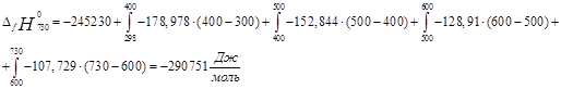 Из таблицы Бенсона возьмем парциальные вклады для  и , вводим набор поправок: