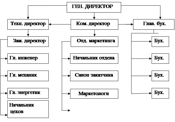 Рисунок 1 – Организационная структура ООО «ЭМС» Наличие линейно-функциональной структуры дает возможность сочетания преимуществ линейных и функциональных систем. Такая структура дает возможность более глубокой проработке планов и решений. Преимущества: 1) Более глубокая подготовка к решению планов, связанных со специализацией работников. 2) Освобождение главного линейного менеджера от глубокого анализа проблем. 3) Возможность привлечения конкурентов и консультантов. 4) Сочетание возможностей линейных и функциональных систем. Недостатки: 1) Отсутствие тесных взаимосвязей и взаимодействия на горизонтальном уровне между структурными подразделениями. 2) Недостаточная четкая ответственность подразделений, т.к. готовящееся решение, как правило, не участвует в его реализации. 3) Чрезмерная развернутая система, взаимодействующая по вертикале, а именно подчиняющаяся по иерархии управления, т.е. тянущееся к чрезмерной централизации. 4) Конкуренция и конфликты по ресурсам. Данная структура управления взаимодействует внутри системы удовлетворительно, и поэтому не нуждается в особых изменениях. В соответствии с действующей линейной структурой управления предприятием утверждается следующий состав основных функций и служб, обеспечивающих их реализацию: маркетинг: служба маркетинга; организация производства: отдел обеспечения сырьем и взаиморасчетов; отдел перспективного развития; отдел внешнеэкономической деятельности; технический и конструкторский отделы; служба главного технолога; основные производства и цех по производству изделий с печатным рисунком; отделы главного энергетика и механика; ремонтно-строительный цех; служба независимого контроля; отдел реализации договоров; транспортно - складское хозяйство; финансы и экономика: финансовый отдел; экономический отдел; юридический отдел; бухгалтерский учет: бухгалтерия (материальный, финансовый учет и расчеты с персоналом); отдел кадров и социальных вопросов; отдел подготовки кадров; отдел охраны труда; здравпункт; столовая; информационное обеспечение: отдел информационно - компьютерных технологий. Единство и взаимосвязь выполнения поставленных задач реализуется через качественное и оперативное исполнение всеми службами возложенных на них обязанностей. Данная структура управления взаимодействует внутри системы удовлетворительно, и поэтому не нуждается в особых изменениях. Механизм управления организации гармонично взаимодействует на всех этапах и между всеми составляющими элементами, что свидетельствует о наличие хорошо функционирующей структуры управления, где каждое подразделение работает пропорционально и дополняет друг друга. Для развития организации ООО «ЭМС» проводит маркетинговые исследования, то есть производит сбор информации по деятельности предприятий, занимающихся оказанием таких же услуг. Руководитель анализирует информацию каждую в отдельности, тем самым, делая выводы по каждой проблеме, затем производит общий анализ по сложившейся ситуации и принимает нужное управленческое решение. А для принятия правильных управленческих решение руководитель пользуется услугами специалистов (экономист, менеджер, юрист и т.д.). 1.3 Анализ факторов внешней и внутренней среды Любая организация находится и функционирует в среде. В менеджменте под ср