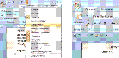 Рис. 1.12. Меню Настроїти панель Рис. 1.13. Змінена Панель швидкого швидкого доступу доступу , яка розташована під Стрічкою