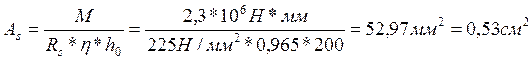 Марка бетона В25; характеристики берутся из СНиП 2.03.01 – 84 * . γ = 0,85 R b = 14 ,5 мПа = 14,5 Н/мм 2 R bt = 1,05 мПа Арматура класса А – I , A – II, A – III . R s = 225 мПа R sw = 175 мПа Считаем момент приведённого сечения: М п = R b *b n *h n* (h o – 0 ,5 * h n ) (26) М п = R b *b n *h n* (h o – 0 ,5 * h n ) = 14,5 мПа * 1450 мм * 30,5 мм (200 мм – 0,5 *30,5 мм) = 118473247 Н*мм = 118,5 кН*м М п > М 118,5 кН*м > 2,3 кН*м Следовательно, нейтральная ось проходит в полке. Конструирование рабочей сетки С2. Подберём сечение арматуры: