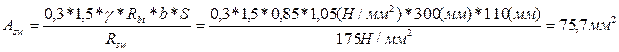 Для обычной и не предварительно напряжённой арматуры число рабочих стержней принимаем по числу рёбер. Число рабочих стержней – 9 шт. ( в = 9 мм) Поперечные стержни принимаем конструктивно диаметром 5 мм; арматура класса А – III c шагом 200 мм. Конструирование монтажной сетки С1. Поперечные и продольные стержни диаметром 6 – 8 мм, арматура класса A – I . Количество продольных стержней равно количеству пустот, шаг поперечных стержней равен 100 мм. Проверим прочность наклонного сечения. Q < Q в Q в = 0,6* R bt *b*h 0 , где (29) b = 300 мм Q в = 0,6* R bt *b*h 0 = 0,6*1,05(Н/мм 2 )*300(мм)*200(мм)=37,8 кН Q < Q в 1,7 кН < 37,8 кН Расчёт поперечной арматуры. Каркасы принимаем через три отверстия при высоте плиты 22 см. Шаг поперечных стержней: S = h/2 (30) S = h/2= 220/2=110 мм Арматуру для каркасов принимаем A – II , продольные стержни – диаметр 8 мм, а поперечные – 6 мм. Тогда усилия в поперечных стержнях на 1м длинны, определяем по формуле: q sw = (R sw *A sw )/S , где (31)