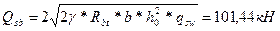 Кратковременная снеговая нагрузка принимается по СНиП 2.01.07 – 85 * «Нагрузки и воздействия» п.5 Г. Южноуральск – зона влажности №3. S = S 0 *μ (22) S 0 = 100 кгс/м 2 μ = 1 (крыша плоская) S = 100*1 = 100 кгс/м 2 Вес снегового покрова – 100 кгс/м 2 Определяем общую расчётную нагрузку, приходящуюся на 1 м 2 длинны: q = q p * B n (23) q = q p * B n = 357 ,32*1,49 = 532,4 Н/м = 0,532 кН/м Определяем расчётный изгибающий момент и силу: