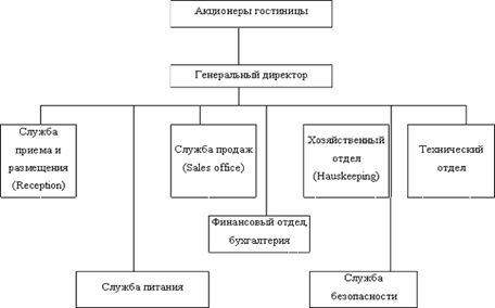 Организационная структура управления и состав персонала гостиницы выглядит следующим образом: