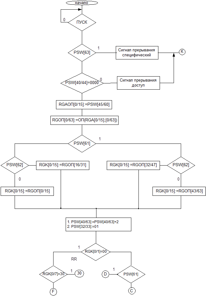 Второму операнду помещается без изменения на место первого операнда. Признак результата не изменяется Программа прерывания; доступ (выборка второго операнда в команде L ) 30 - загрузка положительная(с плавающей запятой)Мнемоническое обозначение LPER