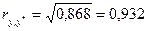 Оценим теперь коэффициент корреляции для фактических y и прогнозных значений