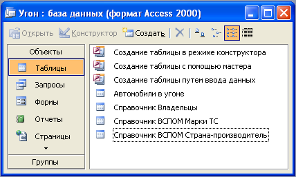 Рисунок 4 Справочник Автомобили в угоне в режиме конструктора