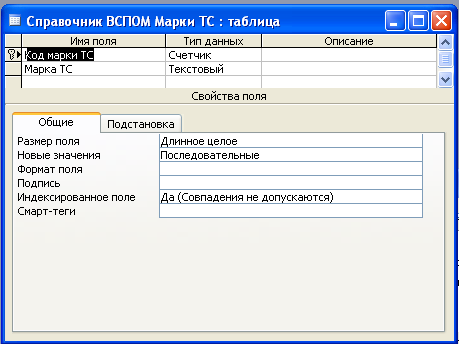 Рисунок 5 Справочник ВСПОМ Марки ТС в режиме конструктора