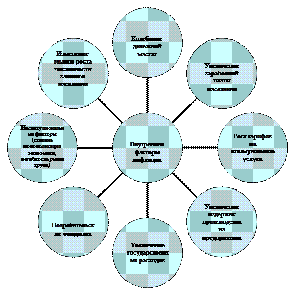 К внутренним факторам инфляции при прочих равных условиях можно отнести: колебание денежной массы, увеличение заработной платы населения, рост тарифов на коммунальные услуги, увеличение издержек производства на предприятиях, увеличение государственных расходов, потребительские ожидания и ряд институциональных факторов инфляции (степень монополизации экономики и факторы, обуславливающие негибкость рынка труда), ускорение темпов роста численности занятого в экономике населения. Наряду с монетарной теорией инфляции для объяснения инфля ционной динамики в развитых странах широко используется теория ценообразования по принципу «издержки плюс наценка» и строятся затратные модели инфляции. Данную модель при прочих равных условиях можно применить и к Российской экономике. Согласно Г. Броверу и Н. Эриксону, исследуемая модель имеет следующий вид: P = M*ULC a *P b im *P y ut, где: Р — уровень цен в экономике, M — наценка, ULC — затраты на рабочую силу, P im — цена импортируемой продукции (сырья и комплектующих), P ut , — коммунальные услуги (газ, электричество и др.). Коэффициенты а, b и у характеризуют коэффициенты эластичности инфляции по соответствующим переменным. В первую очередь настоящий подход используется для изучения инфляционной динамики в долгосрочной перспективе. В качестве решающих факторов инфляции издержек, согласно представленной выше модели, принимается динамика трех переменных величин: заработной платы, тарифов на коммунальные услуги и цен на импортные сырье и комплектующие. Определенное влияние на цены может оказать стремление компа ний к увеличению прибыли. Родоначальником учения о подобном типе инфляции в 1930-е годы стал американский экономист Г. Минз. С использованием методологии Г. Минза можно дать определение «управляемой инфляции» как уве личения цен, вызванного политикой руководства компаний, направ ленной на повышение объема и нормы прибыли. Важнейшим условием такой инфляции является наличие серьезной рыночной власти в руках крупнейших компаний, то есть монополий (олигополий). В условиях России «монопольная составляющая» инфляции носит несколько иной характер. Реализуется она на основе механизма регулирования на государственном уровне цен и тарифов на продукцию и услуги естественных монополий. В первую очередь речь идет о повышении тарифов на электроэнергию, газ и транспорт. Так, цены и тарифы на платные услуги населению в 2009 г. повысились на 11,6 % (в 2008 г. – на 15,9 %, в 2007 г. – на 13,3 %) [14] . Удорожание платных услуг по итогам 2009 г. обусловило оценочно 2,9 процентного пункта, или 33,0 % общего прироста потребительских цен (в 2008 г. эти показатели составили 4,0 процентного пункта и 29,8 %). Прирост регулируемых тарифов на платные услуги в 2009 г. был равен, по оценке, 14,6 % (в 2008 г. – 14,5 %). Тарифы на жилищно-коммунальные услуги выросли на 19,6 %, что на 3,2 процентного пункта превысило соответствующий показатель 2008 года. Услуги пассажирского транспорта подорожали на 6,5 % (в 2008 г. – на 22,5 %). В 2009 г. замедлился рост цен на все основные виды услуг, учитываемые при расчете базового индекса потребительских цен. Особенно заметным было замедление роста цен на санаторно-оздоровительные услуги, физкультуры и спорта, услуги организации зарубежного туризма. Темп прироста цен и тарифов на платные услуги населению в 2009 г. на 3,7 процентного пункта прев