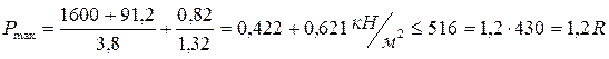 Давление по подошве фундамента: