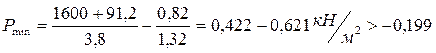 Так как P min отрицательное значение, то подбираем размер фундамента большей площади чтобы исключить выворачивание фундамента из-за приложенного момента b=2,2 l=3