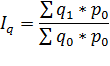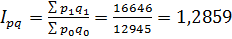 Рассчитаем агрегатный индекс физического объема товарооборота по данным нашего примера: I q