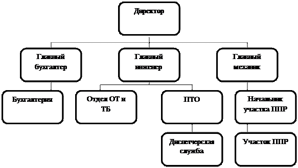 Рис.1. Организационная структура ООО АТП КУМ «Сельстрой» 1.2 Структура бухгалтерского апарата предприятия Бухгалтерский учет на ООО «АТП КУМ «Сельстрой» ведется в соответствии с требованиями Закона РФ «О бухгалтерском учете», Положением по ведению бухгалтерского учета и бухгалтерской отчетности в Российской Федерации, Положениями по бухгалтерскому учету (ПБУ), а также в соответствии с приказом директора ООО «АТП КУМ «Сельстрой» по учетной политике, указаниями и распоряжениями главного бухгалтера о порядке ведения бухгалтерского учета на отдельных участках учетного процесса. В бухгалтерии ООО «АТП КУМ «Сельстрой» работают 6 человек. Во главе бухгалтерии ООО «АТП КУМ «Сельстрой» стоит главный бухгалтер, который несет ответственность за организацию бухгалтерского учета на предприятии, выполнение требований всех действующих нормативных документов по ведению бухгалтерского учета и составлению отчетности предприятия, а также за получение достоверной информации об имущественном и финансовом положении предприятия на основании данных бухгалтерского учета. На ООО «АТП КУМ «Сельстрой» действует компьютерная система обработки учетной информации. Обработка информации осуществляется в программе Инфо-Предприятие. На ООО «АТП КУМ «Сельстрой» существует локальная вычислительная сеть (ЛВС), которая объединяет информацию о поставщиках и покупателях, заключенных с ними договорах, контрактах, соглашениях, дебиторской и кредиторской задолженности предприятия, в том числе, по платежам в бюджет и внебюджетные фонды, и другие сведения, а также обеспечивает доступ всех служб, отделов и подразделений ООО «АТП КУМ «Сельстрой» к данной информации. На ООО «АТП КУМ «Сельстрой» применяется сальдовый метод ведения бухгалтерского учета и ведутся журналы-ордера и главная книга. Первичные учетные документы составляются по утвержденным типовым формам вручную или на компьютере. При этом автоматически формируются бухгалтерские проводки. Основными учетными регистрами на ООО «АТП КУМ «Сельстрой» являются оборотные ведомости, которые формируются по каждому балансовому счету (субсчету). Обобщающими учетными регистрами являются оборотный баланс и сальдовый баланс, на основании которых составляется баланс предприятия. По отдельным балансовым счетам и субсчетам разработаны различные ведомости и расшифровки, группирующие учетную информацию в разрезах, необходимых для управления, контроля, анализа и заполнения установленных форм бухгалтерской отчетности.Рабочий план счетов предприятия включает в себя все разделы типового плана счетов бухгалтерского учета . На расчеты по оплате труда и подготовку всей необходимой документации отводятся сжатые и строго определенные сроки. При этом наличие множества различных факторов, определяющих размер начислений оплаты труда, порядок налогообложения, удержаний и т.д., делает расчет в каждом конкретном месяце непохожим на предыдущие. В процессе начисления и выплаты сумм заработной платы бухгалтеру необходимо руководствоваться значительным числом законодательных и нормативных актов гражданского и налогового законодательства, основным из которых является Трудовой Кодекс (ТК РФ), а также локальными нормативными актами, разрабатываемыми каждым предприятием. Важна не только правильность осущ