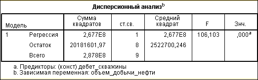 А итоговая модели зависимости объемов нефтедобычи будет выглядеть следующим образом: