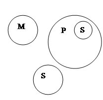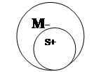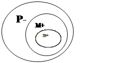 (E)Доказательство, полученное с нарушением закона(Р), не имеет (E)Данное доказательство(S) не имеет юридической силы(М) (A)оно(S) получено с нарушением закона(P2) Субъект заключения «доказательство» является в силлогизме меньшим термином, а предикат «полученное с нарушением закона»-большим. Термин, входящий в посылки, но отсутствующий в заключении (не имеет юридической силы) является средним термином. Модус ЕЕА. Такого модуса ни в одной фигуре нет. Нарушено правило посылок: Из двух отрицательных посылок вывода сделать нельзя. Большая посылка является общеотрицательным суждением (Е) Меньшая посылка является общеотрицательным суждением (Е) Вывод является общеутвердительным. (А) Общая схема в кругах Эйлера.