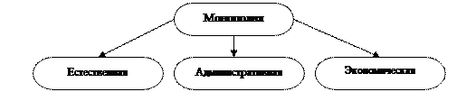 По методам осуществления конкуренцию можно подразделить на ценовую и неценовую. Ценовая конкуренция предполагает продажу товаров по более низким ценам, чем у конкурентов. Снижение цены теоретически возможно либо за счет снижения издержек производства, либо за счет уменьшения прибыли. Такой метод вытеснения конкурентов с рынка (метод конкурентной борьбы) известен также под названием «война цен». В свое время американская монополия «Кока-Кола» применила его при вторжении на рынки стран Латинской Америки, позднее таким же образом японские фирмы продвигали свои товары в США и Западную Европу. В последнее время снова возродился интерес к ценовой конкуренции в связи с внедрением технологий, позволяющих экономить ресурсы и, следовательно, снижать себестоимость. Неценовая конкуренция основана на предложении товаров более высокого качества, с большей надежностью и сроками службы, на использовании методов рекламы и других способов стимулирования сбыта. По отраслевой принадлежности различают: · Внутриотраслевую конкуренцию - конкуренция между предпринимателями, производящими однородные товары, за лучшие условия производства и сбыта, за получение сверхприбыли. · Межотраслевую конкуренцию - конкуренция между предпринимателями, занятыми в различных отраслях производства, из-за выгодного приложения капитала, перераспределения прибыли. Конкуренцию также подразделяют на совершенную (свободную) и несовершенную (монополистическую). Для совершенной конкуренции характерна свобода, от какой бы то ни было регламентации: свободный доступ к факторам производства, свободное ценообразование и др. При этой конкуренции никто из участников рынка не может оказать решающего влияния на условия реализации товаров. 2.4 Типология конкурентной структуры рынков. Характеристика основных типов рыночных структур.Под типом рыночной структуры понимается совокупность условий, в которых протекает рыночная конкуренция. Выделяют 4 основных типа рыночных структур: совершенная конкуренция, монополистическая конкуренция, олигополия и монополия. Для диагностики типа рыночной структуры обычно анализируются четыре фактора, определяющие степень конкуренции на рынке: 1. число и размер фирм на рынке; 2. характеристика товара (в первую очередь степень его однородности у различных фирм); 3. наличие барьеров на входе в отрасль и выходе из нее; 4. степень доступности рыночной информации, необходимой для нормального функционирования фирмы.[6] Условия функционирования рынка совершенной конкуренции приводят к тому, что для всех покупателей и продавцов устанавливается единая цена, которая в долгосрочном периоде равна минимальным средним издержкам. При изменении спроса или предложения цена в краткосрочном периоде становится выше или ниже минимальных средних издержек, стимулируя, соответственно, расширение или сокращение выпуска за счет межотраслевого перераспределения факторов производства. Из условий функционирования рынка совершенной конкуренции следует также, что в долгосрочном периоде у всех фирм, работающих в отрасли, средние экономические издержки оказываются одинаковыми. Существуют разные виды монополий, которые можно свести к трем основным: естественная, административная и экономическая. Таблица 2 Виды монополий. Естественная монополия возн