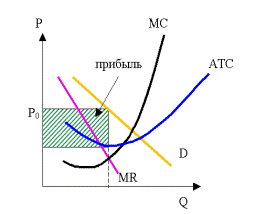 В краткосрочном периоде фирма, производящая на уровне равенства предельного дохода и предельных издержек, может получать прибыль, как показано на первом графике. Рисунок 2 График производительности монополистически конкурентных отраслей в краткосрочном периоде времени.