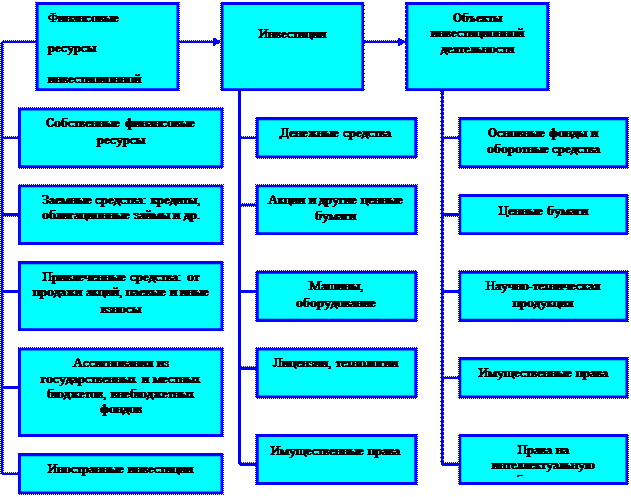 ВведениеНеобходимым условием развития экономики является высокая инвестиционная активность. Она достигается посредством роста объемов реализуемых инвестиционных ресурсов и наиболее эффективного их использования в приоритетных сферах материального производства и социальной сферы. Инвестиции формируют производственный потенциал на новой научно-технической базе и предопределяют конкурентные позиции стран на мировых рынках. При этом далеко не последнюю роль для многих государств, особенно вырывающихся из экономического и социального неблагополучия, играет привлечение иностранного капитала в виде прямых капиталовложений, портфельных инвестиций и других активов. Инвестиции определяют будущее страны в целом, отдельного субъекта хозяйствования и являются локомотивом в развитии экономики. А привлечение инвестиций в экономику РФ и их освоение способствуют повышению производительного потенциала ее экономики. Предпринимательская, инвестиционная деятельность и состояние экономики в целом в значительной степени зависят от государственной политики. Своими действиями государство может существенно затормозить или ускорить эти процессы. Инвестиции это процесс вложения капитала в денежной, материальной и нематериальной формах в объекты предпринимательской деятельности или финансовые инструменты. С целью получения текущего дохода (прибыли) и обеспечения возрастания капитала. Инвестиции являются главной формой, реализующей стратегию развития предприятия. Характерными чертами рыночной экономики являются динамичность экономической среды, постоянное изменение внешних факторов, определяющих политику предприятия, изменение конкурентных цен на продукцию, колебание курсов валют, инфляционное обесценивание средств хозяйствующего субъекта, появление конкурентов, предоставляющих продукцию идентичную или превосходящую по качеству продукцию. Для поддержания конкурентоспособности предприятия и его доли рынка сбыта, предприятию постоянно необходимо производить реконструкцию производственных мощностей, обновление имеющейся материально-технической базы, наращивание объемов производственной деятельности, освоение новых видов деятельности. Инвестиционная деятельность в той или иной степени присуща любому предприятию. При большом выборе видов инвестиций предприятие постоянно сталкивается с задачей выбора инвестиционного решения. Принятие инвестиционного решения невозможно без учета следующих факторов: вид инвестиции, стоимость инвестиционного проекта, множественность доступных проектов, ограниченность финансовых ресурсов, доступных для инвестирования, риск, связанный с принятием того или иного решения и др. Все вышеперечисленные факторы и обусловили актуальность нашего исследования. Цель работы – изучить особенности инвестиционной политики фирмы. В соответствии с поставленной целью решались следующие основные задачи: - дать понятие инвестициям; - рассмотреть источники, объекты и субъекты инвестиций; - определить сущность инвестиционной политики фирмы; - проанализировать внутренние и внешние источники фирмы. Объект исследования – инвестиционная политика фирмы Предмет исследования – влияние и возможности инвестиционной политики фирмы на ее развитие. 1. Теоретические аспекты инвестицийВ совр