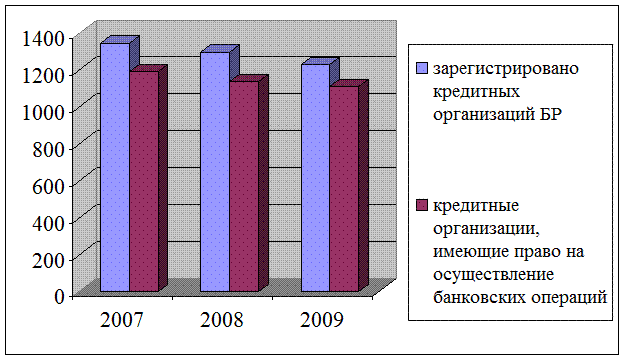Из таблицы 2.1. и рис.2.1. видно, что за последнее время приходит сокращение количества действующих кредитных организаций. В течение 2007-2009 года, число кредитных организаций, зарегистрированных Банком России, снизилось на 117 , снижение количества кредитных организаций сопровождается также сокращением количества их филиалов. Рис.2.1. Структуры кредитных организаций России в 2007 – 2009гг. Под воздействием мер, предпринимаемых Банком России для повышения надежности и стабильности банковской системы, идет процесс укрупнения банковского капитала, в частности, путем ужесточения процедур регистрации и лицензирования, а также отзыва лицензии у финансово несостоятельных банков. Количество кредитных организаций, у которых отозвана лицензия в связи с нарушением банковского законодательства, значительно снизилась: за 2007 год – 806 лицензий, за 2008 год – 677 лицензий. Часть банков, у которых были отозваны лицензии, прошли процедуру реорганизации – слияния, присоединение, преобразование в формы других банков. В структуре банковских активов основным направлением размещения средств является кредитование, данные приведены в таблице 2.2. Таблица 2.2 Структура размещения средств в рублях [13]. (млн. руб.)