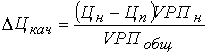Среднереализационная цена единицы продукции рассчитывается путем деления выручки от реализации соответствующего изделия на объем продаж. На изменение ее уровня оказывают влияние следующие факторы: качество реализуемой продукции, рынки сбыта, конъюнктура рынка, инфляционные процессы.[6] Качество товарной продукции – один из основных факторов, от которого зависит уровень средней цены реализации. За более высокое качество продукции устанавливаются более высокие цены и наоборот. Изменение среднего уровня цены изделия за счет его качества (DЦкач ) можно определить следующим образом: