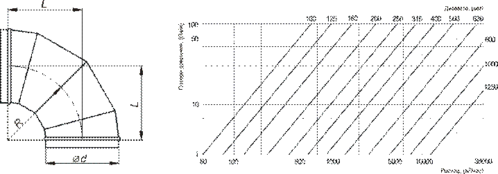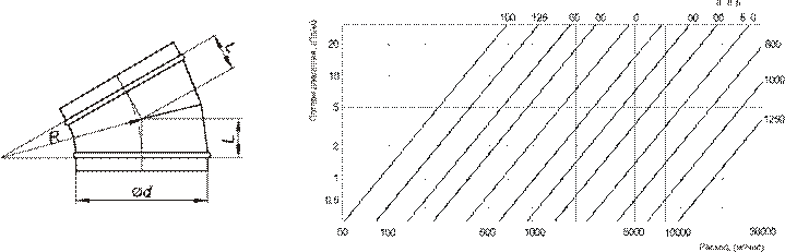 Радиус поворота в стандартном отводе равен его диаметру R = d