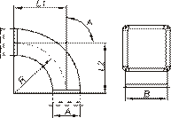 Для стандартных отводов L1=L2. Возможны и другие соотношения А, В и R с учетом технологических ограничений.