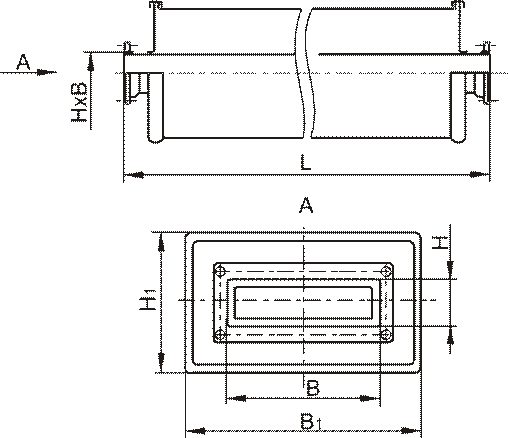 Условные обозначения: АхВ - размер сечения, мм L - длина, мм Для стандартных воздуховодов L = 2500.