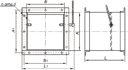 Примечание: По заказу изготавливаются клапана других сечений, высота клапана должна быть кратной 100 мм +10 мм (на уплотнение). Ширина клапана может быть любой. Заслонки воздушные унифицированные АЗД. Общие сведения: заслонки воздушные предназначены для регулирования количества воздуха и невзрывоопасных газовоздушных смесей, агрессивность кото-рых по отношению к углеродистым сталям обыкновен-ного качества не выше агрессивности воздуха, с тем-пературой до 80° С, не содержащих пыли и других твердых примесей в количестве не более 100мг/м3 Заслонки применяются в системах вентиляции, кондиционирования воздуха, воздушного отопления и других снитарно-технических системах с рабочим давлением до 1500 Па(150кгс/м2). Заслонки выпускаются круглого и прямоугольного сечения и представляют собой патрубок (корпус) из тонколистовой стали, выполненный с поворотными лопатками, установленными на оси. Лопатки снабжены резиновыми уплотнениями. Поворот и фиксация положения лопаток осуществляется с помощью ручки узла управления или с помощью электропривода. Конструкция заслонок принята вне зависимости от выбранного типа исполнительного механизма. Воздушные заслонки могут работать в режиме "открыто-закрыто", стандартное исполнение и в режиме регулировки воздушного потока, для этого необходима комплектация соответствующим исполнительным механизмом. Условия эксплуатации: заслонки предназначены для эксплуатации в условиях умеренного (У) 1, 2, 3, 4 категорий размещения по ГОСТ 15150-69. Заслонка воздушная прямоугольного сечения с ручным управлением АЗД-192 серия 5.904-49.